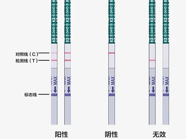 2、出现两条线:即对照线和检测线都显色,且检测线明显清晰,表示已经怀孕。